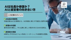 生成AIが経営の意思決定に踏み込む速度は、ここ1~2年で一気に加速しました。 ニュースでは「AI社長」という言葉が踊り、同時にAIを参謀として会議に同席させ、別視点の提案や要点整理を求める経営も広がっています。 中小・ベ […]