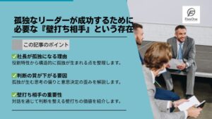 孤独なリーダーが成功するために必要な『壁打ち相手』という存在新着!!